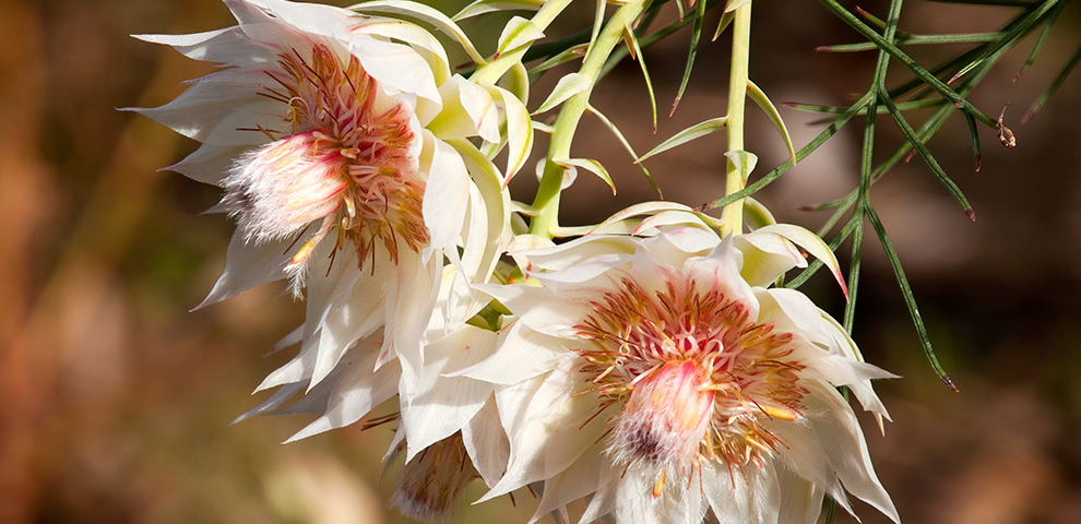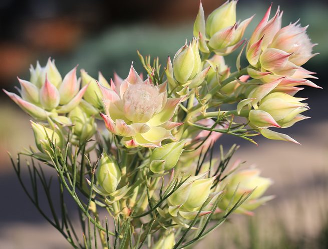 Ein Hauch Südafrika, eingefangen in zarter Struktur und exotischer Ausstrahlung. Serruria florida inspiriert zu Werkstücken, die Geschichten erzählen – lebendig oder getrocknet, stets ein Blickfang für die Sinne.
